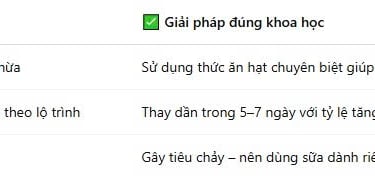Ăn nhiều bữa/ngày: Hệ tiêu hóa còn yếu, nên chia nhỏ thành 3–4 bữa để giảm áp lực lên đường ruột.